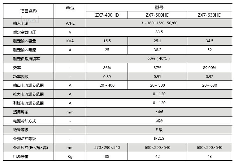 ZX7-400/500/630HD 逆变式直流弧焊机