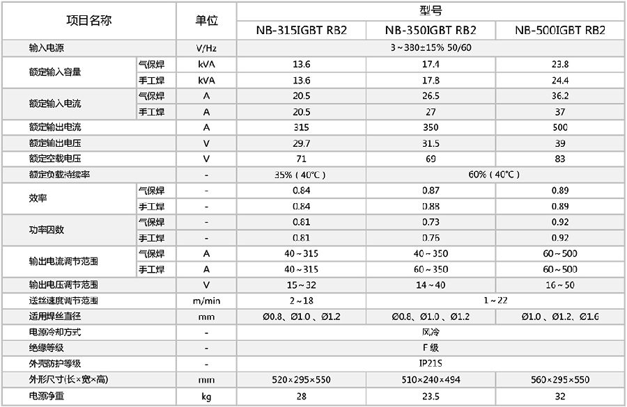 NB-315/350/500IGBT RB2 逆变式气体保护焊机